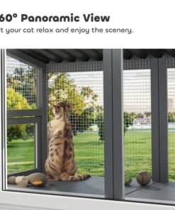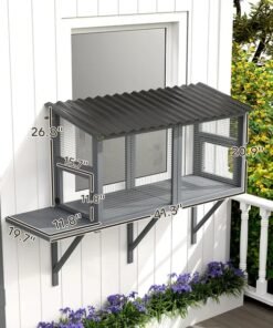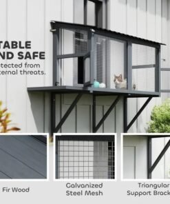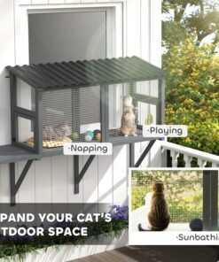 Wooden Cat Catio, Outdoor Cat Enclosure Window Perch With Jumping Platform